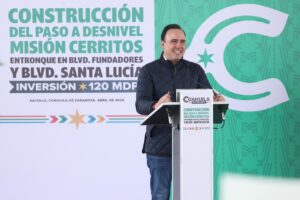 “Hoy, junto con mi amigo el alcalde Javier Díaz arrancamos la construcción del paso a desnivel Misión Cerritos/Fundadores con una inversión de 120 millones de pesos, que beneficiará a miles de familias de este sector de Saltillo. Esta es una de las obras más importantes que en campaña nos pidió nuestra gente y hoy les estamos cumpliendo. Con esta y otras obras seguimos mejorando la movilidad y la conectividad en la capital de Coahuila”, destacó el gobernador.